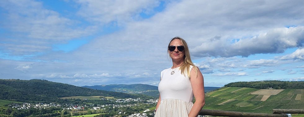 Afterwards, a few of us decided to tackle the hike up to the Burgruine Landshut, the ruined castle that sits high above the town. It was a fairly energetic climb, but absolutely worth every step for the breath-taking, Instagram-worthy views over the Moselle Valley. From the top, the river curled below us in perfect loops, surrounded by vineyards stretching as far as the eye could see. We stood there for ages, taking photos, chatting and just soaking up the moment — the kind of view that stays with you long after the trip ends.