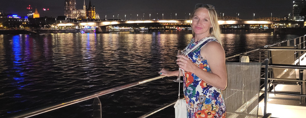Back onboard, dinner was a beautifully relaxed yet elegant affair — my first taste of Riviera’s five-star dining. The service was exceptional, and it was so lovely getting to know our group, the friendly waiting staff and fellow guests over delicious food and wine. After dinner, we wandered up to the sundeck, where Cologne sparkled in the night — the cathedral and bridge lights reflecting on the water. We stayed there as the ship gently pulled away at 9.30pm, waving goodbye to the city and watching it slowly fade into the distance.